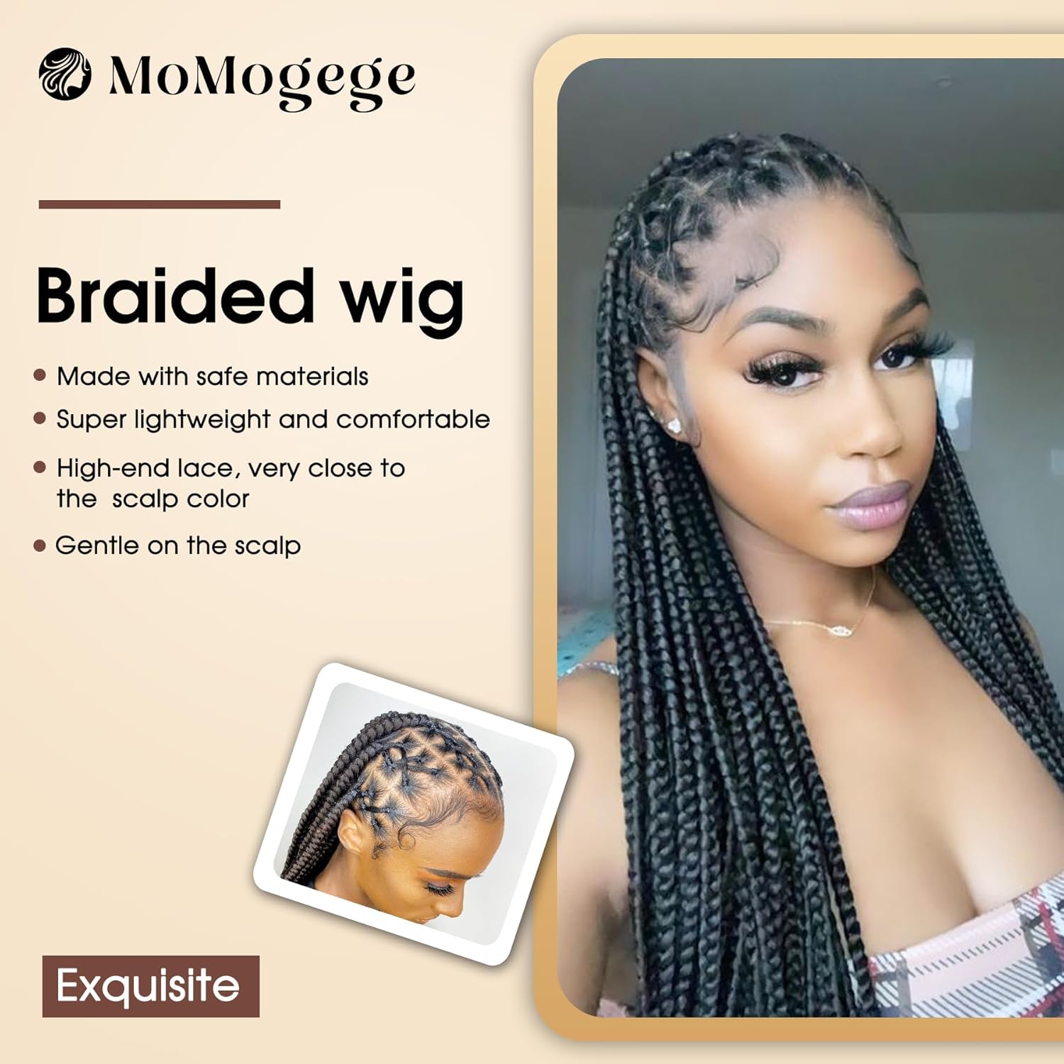 - 【Square Criss Cross Knotless Design】Our braided wigs are meticulously crafted, They adopt the craft of full lace front knotless box braided wig and the design of braided wigs with baby hair to mimic the appearance and texture of natural hair. Each strand is precisely woven to achieve a natural look. Its color and luster closely resemble natural hair, providing you with a realistic hairstyle that stands out in both everyday life and special occasions.